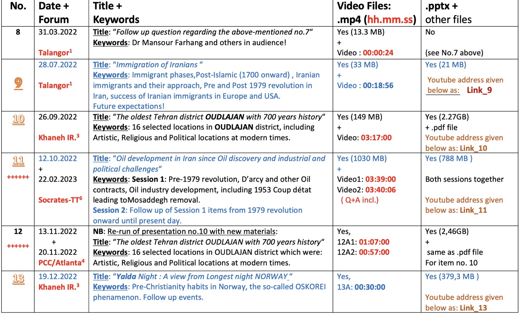 Items herein include information( documrents, videos etc.) of Dr Sarmast conferences in various forums, whether in person or virtual (i.e. via ZOOM or otherwise).